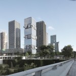 Commissioned by the duo of Southern and Bosera Funds back in 2010, the project was envisioned to contrast any high-rise in the vicinity because it is different. With its memorable design, based on an early sketch drawn by Hans Hollein in his time in Chicago, how skyscrapers should look in the future, it becomes a dominant statement within the high-rises, in an exposed corner position of the cluster. The office tower has a strategic position within the texture of the city. Adjacent to the Town Hall and its main North-South axis, and located on East-West oriented Shen Nan Avenue, it has the pole position in the central quarter in Shenzhen, where in midst the stock exchange building dominates.