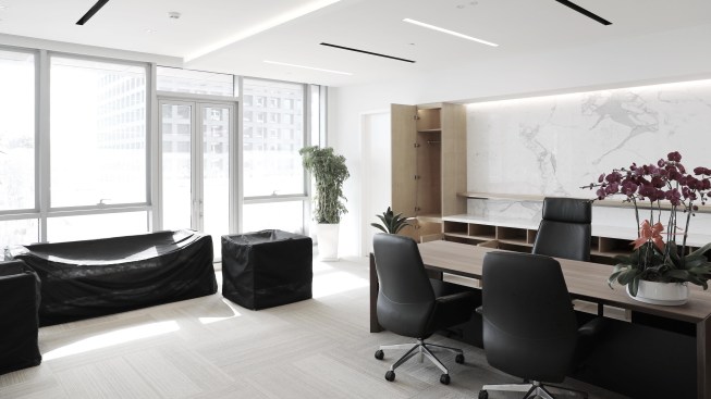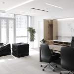 The materials used are elegant surfaces of stone and wood, glass and metals.