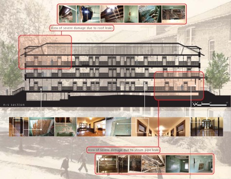 Prominently located at the campus entry, this former men’s dormitory is one of the first buildings designed by South Carolina’s first African American registered architect, who would also go on to become college president, serving for 17 years until 1949. In 1985 the dormitory was placed on the National Register of Historic Places. However, within 10 years it was closed and virtually abandoned, during which time burst steam pipes and roof leaks caused severe damage. The wooden structure twisted and warped, wood flooring and wainscoting rotted, plaster ceilings fell and masonry veneer buckled. Exterior architectural features deteriorated with time, as well, and were removed and discarded.