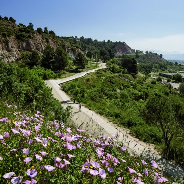 The project is set within the broader scheme of the Igualada Green Ring, the aim of which is to generate a series of itineraries for pedestrians and bicycles in the form of a green belt around the city’s perimeter. This new sustainable mobility infrastructure sets out to design a system of parks and peri-urban open spaces that function as a network suitable for environmentally friendly leisure activities, adapting and recovering, to a large extent, spaces that are currently run-down or underused. In this context, Camí de les Guixeres, the track leading to the mines, represents the recovery of a stretch of 1.65 kilometres, out of which the first 800 metres have now been completed.