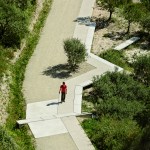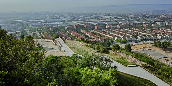 The layout of this linear scenic viewpoint recognises the principal existing landmarks, vegetation and trees by widening and creating rest areas, complemented with linear benches. Finally, this strip recognises the exceptionally fine views of Montserrat from Les Guixeres Hill, generating a final vantage point in the form of a structure cantilevered over the mountainside.