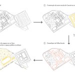 The project lies in four main pillars: the school block, the public school yard, the pinhal, and the infrastructure spine along Rua Guilherme Salgado.
