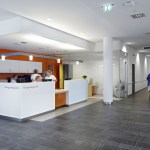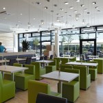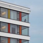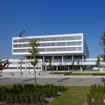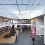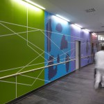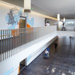 The interior spaces, including the 446 patient rooms, are intentionally modest, light and friendly, achieving an upscale level of quality through a minimalist design approach. Interior colors throughout the building are warm and earth-inspired. A 650-foot-long, two-level mural adorns the walls of the hospital’s main corridor, creating a rhythm along the corridor through a series of abstract scenes, cartoon strips, and bold color applications.
