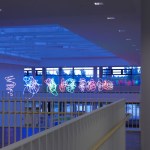 In the atrium, 10 individual neon nodes extend down from the skylight. The nodes are intended to be experienced as clouds of colorful molecules with changing color intensities depending of the daylight conditions. The nodes act as artificial light elements further supporting the idea of this "hospital of light."