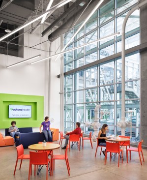 Charles Rose Architects adaptively reused a former industrial building, the Seaholm Power Plant, for athenahealth Inc.’s new offices—an IT company that provides cloud-based services for electronic health records, medical billing, and patient engagement. The interior design and architectural interventions were inspired by the Art Deco-like structure and that era’s iconic advertising posters. With 70 employees and rapid, projected growth, the space employs flexible design strategies throughout.