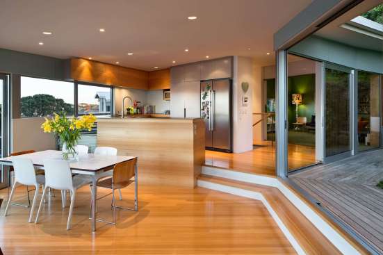 The house sits on a steep site above Seatoun Heights Road and was tailored to the site, to fit within budget and the WCC building envelope. The owners were attracted to the property because of the spectacular views and being amongst the existing established vegetation.