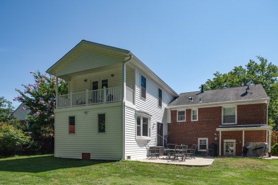 Thinking about adding more space to your home but not sure where to put it? Consider building up instead of out like our homeowners in Fairfax who added a master suite complete with two huge closets! In designing a second-story addition, our goal at Thomas Custom Builders is to make it look like it was there from the beginning. In this case, we added to the existing family room at the back of the house. We also added a dormer to the front of the home to accommodate space on the landing for a second closet. Both the master and secondary closet feature beautiful, custom, built in cabinetry. The spacious master bedroom opens to a covered deck through double French doors. The new hallway leads to both closets as well as the new master bathroom complete with double sinks and a stylish, light grey shaker cabinetry. The oversized walk-in shower boasts two shower heads, including a rain shower. The mixed sea foam tile and white subway add interest and dimension. The new master suite is accessed by a staircase from the middle floor of this split-level home. Building a second story addition is incredibly exciting. You get to reimagine a small home you love into a larger one that better suits your needs. If you do it right, you’ll have something you can proudly reside in, and the knowledge that you made a wise investment.