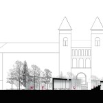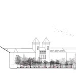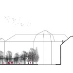 The intensification of the optical bond between the cathedral and the Hercules fountain demands the shear through the shell, the formation of a clear pathway and the bilateral arrangement of the indoor passive spaces (cafeteria, library, utility stalls, WC) of 190sm. total area. In between, the configuration of a children play area and an open-air theatre greets locals’ activities. A second open-air space, includes linear green walls, based on a collective effort of locals, who are responsible to plant herbs-flowers and also take care of them. The unbuilt area serves as a variety of active and passive spaces. It integrates flower beds, rolling benches and cycle parking. Pathways and walking networks surround the triangular field, infiltrate the shell and spread within.