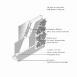 The triangular shell grows entirely on the ground level. IPE structural beams, founded on reinforced concrete strip foundation, shape the steel frame, on which the reflective sheets are hung up. The ground surface, of unequal width elements of concrete, follows the basic synthetic axe.