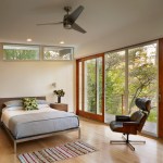 The second-story master suite became a spacious, light-filled oasis with clerestory windows and eight-foot-tall glass doors that open onto the suite’s cantilevered balcony. The steel and tempered glass footbridge, fabricated by a local artisan, links the master bedroom and bath to the rest of the house. And, in-keeping with the house’s mid-century modern origins, horizontally-battened Hardie Board panels on the exterior work in concert with existing vertical battens, providing protection from the elements.