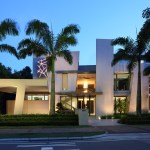 Located minutes from the city center, the site is in a gated island community and boasts a water-front slip for a boat. Informed by the trapezoidal shaped property, an angle was designed into the plans and façades as a play on the rectilinear forms of the neighbors, while soft organic curves in the interiors and landscape serve as a counterpoint.