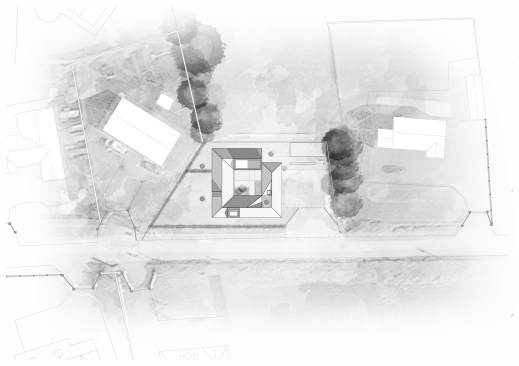 three chimneys.The external forecourt deals primarily with the arrival. The building itself is wrapped around an