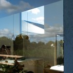 field behind, A low window in the bathroom gives glimpses into the courtyard without exposing the occupant and In
