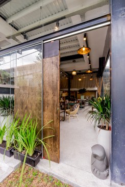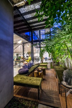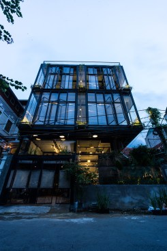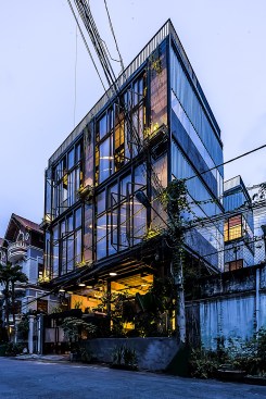 It mixes modern and Indochine, inside and outside, past and future. Its prefab steel structure is (con)temporary, flexible, sustainable and relocatable. And it only took 3 months from concept to completion.