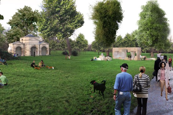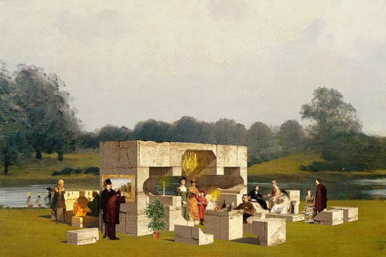 With a play on architecture, our design aims to fulfill the simple primary purpose of a Summer House: a space for shelter and relaxation. The design is based on projecting an inverse replica of the historic Queen Caroline's Temple—a tribute to its robust form, space and material, recomposed into a bold new sculptural object.