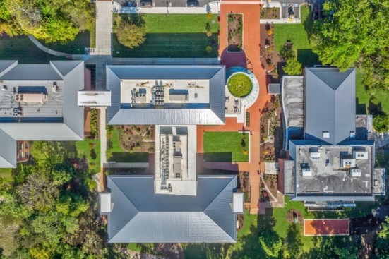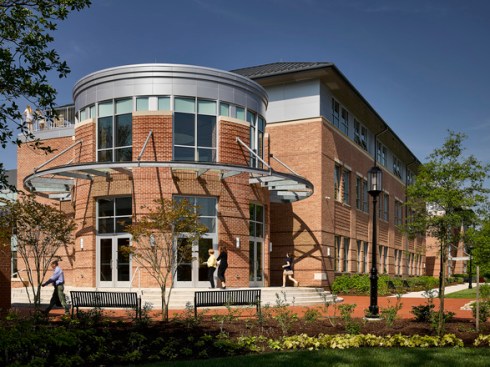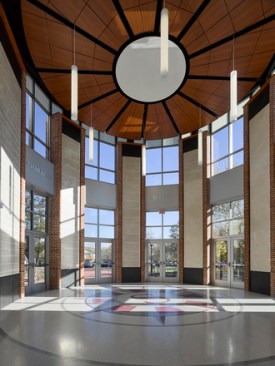 Answering the Severn School’s challenge to create a new facility that marries tradition and innovation, Hord Coplan Macht led a highly inclusive and collaborative planning and design effort to create the new Teel Academic Center. Replacing the original Teel Academic Center that was originally built as a dormitory 1969, Hord Coplan Macht worked closely with school leadership, faculty, students and alumni to design a fitting edifice for the school’s middle and upper school students. The new 55,000 sf Teel Academic Center has a clearly stamps itself as the center of the campus. The door is marked by the Centennial Hall rotunda, which includes the inscribed name of each and every Severn School graduate. The building highlights include: • over 30, 21st century classrooms with cutting-edge technology • a modern, spacious, two-story flexible-by-design library with group and individual study areas • an Innovation Lab enabling students to explore, design, and experiment with ideas and concepts • offices and meeting spaces designed to inspire collaborative thought, outstanding teaching, and immersive learning • two exterior courtyards for students to gather, relax, and enjoy the outdoors • numerous collaboration spaces within the building, further aligning the facility with the school’s curriculum and mission The new facility also contains upper school humanities classrooms and the school’s central administration functions, while the renovated portion contains all of the middle school instructional spaces. Located between two existing buildings, the Teel Academic Center fronts the main campus road and fields. The rear of the site faces the water, with access to a series of outdoor environmental learning and activity features.