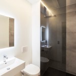 Living all-inclusively, what does that look like? The ten residential units offer solutions to be able to live fully equipped ad-hoc. For the digital nomad, fast connections are important, not only to data networks, but also to social ones. Therefore, adjacent to the fully furnished private rooms, there are also high-quality communal areas, which invite communication and facilitate the start in a foreign city. The private rooms are primarily designed for sleeping and working, while all other uses are designated for the common areas. Special features such as a large community kitchen for cooking and eating together create a feel-good atmosphere. In the communal area on the ground floor, next to the laundry room, is a large dining area for parties, as well as a lounge with a bar and a home cinema. The house has state-of-the-art communication and security technology.