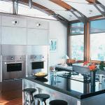 “Our whole purpose was to turn the house upside down, place the living quarters on the upper floors, and put all other functions downstairs,” he says. “That way we could maximize the view, and still work within the strict height limitations in this neighborhood.”