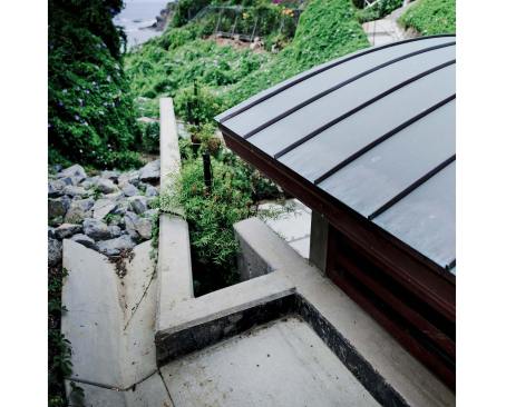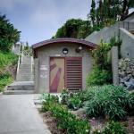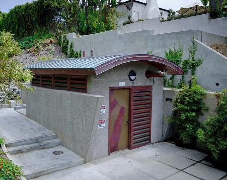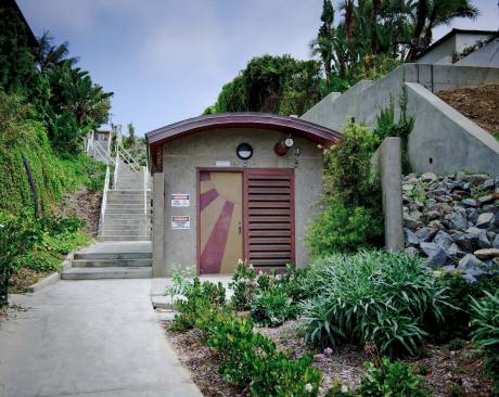 The building was designed with a marine theme that included the use of copper roofing, louvers and doors that will reach a natural patina green in time. The 200 square foot building was designed to appear like a contemporary public park building to blend into the setting for this highly public used beach access. The project design was required to not obstruct site lines of view to the beach from Cliff Drive and fit aesthetically with the surrounding multimillion dollar residences. The design includes cast-in-place concrete walls with integral color, a curved copper standing seam metal roof and a sunrise embossed designed copper clad entry door. The building houses a 100 KW emergency generator; therefore, special acoustical louver sections and acoustical decking were designed into the project to mitigate any noise from the building during its operation.