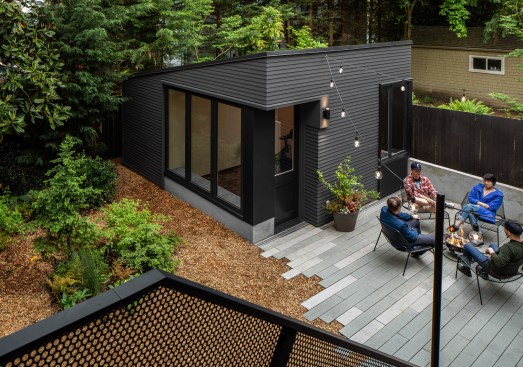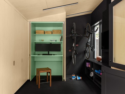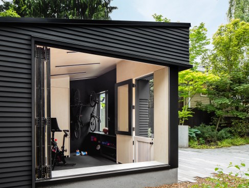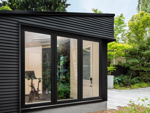 Best Practice originally designed the Shed-O-Vation as part of their Backyard Bump-Out project completed in 2018. When COVID forced these homeowners to confront the need to accommodate working and exercising from home, they reconsidered how to integrate these essential functions into a new home-life reality. With this in mind, they tapped the design team at Best Practice Architecture to devise a plan that reimagined and enlarged the existing backyard storage shed to provide much-needed relief. The design team transformed what was once a simple, utilitarian modern box to store bikes, exercise gear, and yard tools into a home office and multi-functional exercise studio with ample storage.