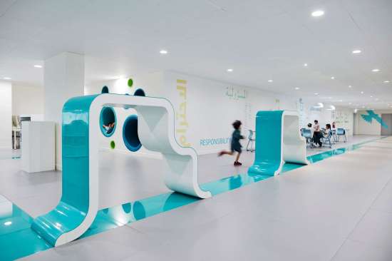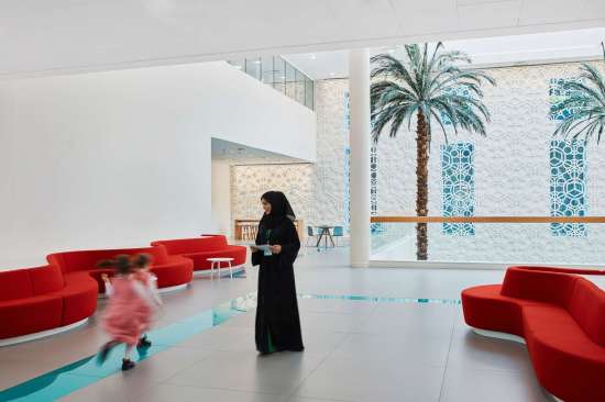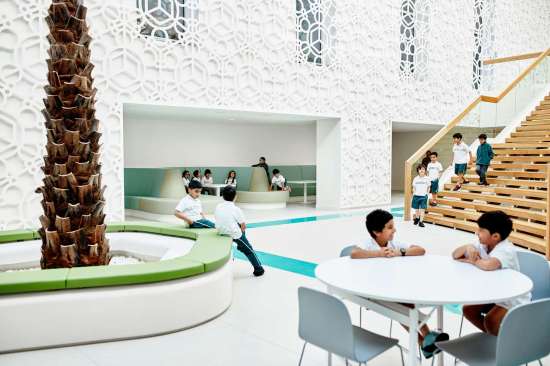 The design for Sheikh Zayed Private Academy inspires innovative thinking by combining differentiated learning, local history, and interdisciplinary meetings.