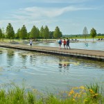 To help draw people in to circulate around and throughout the environment, JCFO (which also conceived the overall master plan) has fashioned miles of gently undulating paths, which wind past lushly planted fields and alongside the banks of a newly expanded lake—even crossing the water at one narrow inlet via a scenic wooden footbridge. Scattered throughout this idyllic setting, additional facilities—including a farmhouse, boathouses, bike rental, and horse stables—provide still more ways to get close to nature, as well as generate revenue for the park, which will help keep up the momentum of its redevelopment so that it can eventually realize its full potential.
