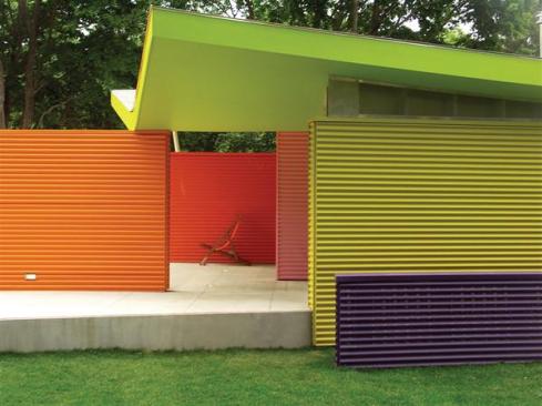 Stamberg Aferiat Architecture • Stamberg Aferiat Architecture conceived of a fanciful retreat into a 1,100-square-foot quasi-Cubist crayon box for the most demanding of clients: themselves. Nicknamed “Maison Plastique,” this building on Shelter Island, N.Y., was intended to reference Mies van der Rohe’s Barcelona Pavilion, an allusion that Paul Aferiat and Peter Stamberg achieved “in a tongue-and-cheek sort of way,” juror Scott Kilbourn said. The architect-homeowners twisted the floor plan out of a right-angle rationality and used the project as an experiment in new industrial materials, such as a rubber roof and the multiwall polycarbonate that is used in place of glass—its two sheets separated by many perpendicular bracing pieces. Canted walls in painted corrugated aluminum dot the site, and the architects chose strong colors that Mies could only dream of. “It has very few forms, very few elements,” juror Yolande Daniels said. “It relies on color to give it psychology, but it works.” Kilbourn called the project “seductive,” “striking,” and “unique in punch,” but the jurors weren’t unified on whether these were good qualities. Bill Valentine said that the riot of color and angles was “frivolous,” but the appropriateness depends on the function, and most deemed it fair for a beach house.