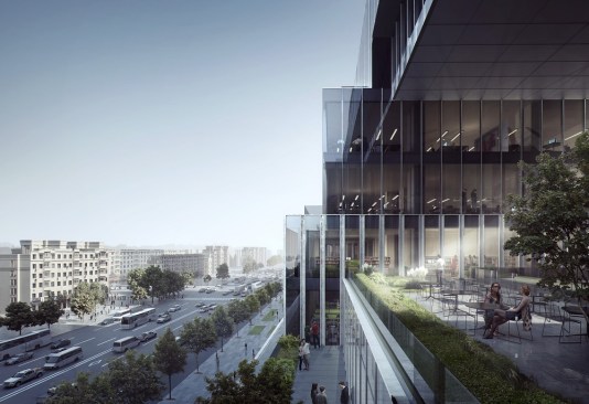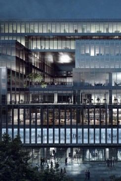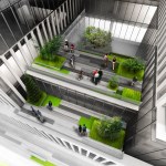 The stringent zoning code prescribed a stepped massing form to ensure sunlight access for the residential buildings north of the site, which established a significant contem¬porary architectural presence and distinguishes the new office building from its immediate neighbours. Taking advantage of the stepped massing, multiple voids and atria are introduced to break down the scale of a build¬ing that stretches 180 metres in length. This results in an unconventional office building with no typical floor plans but elevated gardens and terraces that provide unexpected indoor and outdoor experiences. These voids and atria allow the dynamic of¬fice spaces to be filled with natural daylight and improved natural air ventilation, while creating a porous and permeable interface along the main street.