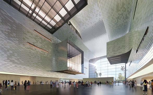 With a total area of approximately 125,000 sq.m, the museum’s U-shaped plan provides intuitive orientation and navigation, guiding visitors through its sequence of interconnecting public spaces, galleries and educational facilities centred around its atrium courtyard; defining a journey of discovery that unites the city and park with the museum’s inspirational exhibitions.