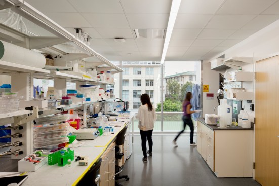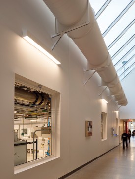 The energy intensive wet labs and nanotechnology research facilities comprise over half Scott Hall’s annual energy consumption. Reliable high-performance mechanical systems, management and occupancy controls, and inventive design strategies for high use spaces significantly reduced energy consumption and helped Scott Hall achieve LEED Gold certification. In addition, building systems were designed to allow for future change as research needs evolve.