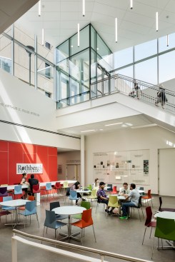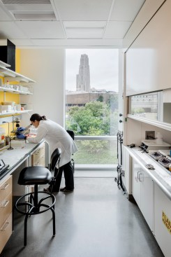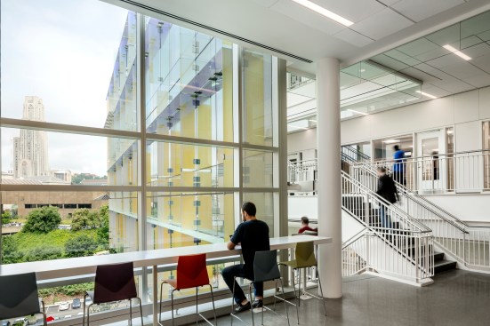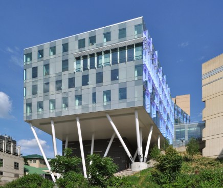 Scott Hall is Carnegie Mellon University’s new LEED Gold Nano-Bio-Energy Technologies building. The new 109,000 square-foot facility embodies the university’s interdisciplinary culture and creates a collaborative research center at the forefront advanced nanotechnology and complex engineering research. The building houses a diverse array of programs and institutes including the Wilton E. Scott Institute for Energy Innovation, the Bertucci Nanotechnology Laboratory, the Department of Biomedical Engineering, the Disruptive Health Technologies Institute, and the Engineering Research Accelerator, as well as offices, meeting rooms, and support programs.