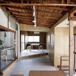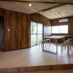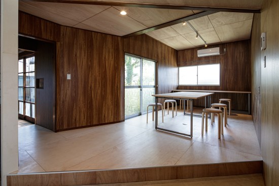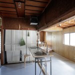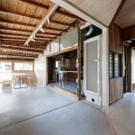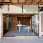 Similar to what happened with the exterior, even in the interior the renovation started from removing and demolishing all the broken and damaged elements which got rotten during the years and the state of disuse in which the house has been for a long time. The extension’s walls and ceiling have been repaired and all covered with wooden panels all over their surface. The entrance floor is made of polished concrete and it lays on a lower level than the other rooms of the office building, being this a traditional feature of the Japanese-style house called Doma. Both the primary and secondary structure of the extension has been reinforced by adding some beams and some new pillars, especially where the external corrugated metal sheets have been replaced, and with them also the wooden structure that supports the metal cover has been fixed.