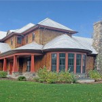 We designed a shingle style home for a young family with small children, on a “tear-down” lot in a residential neighborhood. The long and shallow lot received a similar design response, conforming to the zone code regulations. Cedar shingles are used for the roofing and siding, with a stone base that wraps around the house. Tapered bungalow columns sit on stone piers at the covered porches. Copper is used extensively for gutters, flashing and at the roof above the entry. The cedar shingle siding sweeps in 3 horizontal bands to break up the siding. The upper gables have shingles set in a diagonal pattern to do the same. Aluminum clad windows are finished in a bronze color, while all exterior PVC trim is painted a deep red…resulting in a very natural and rustic appearance.