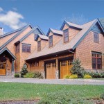 The house is finished in a dark green trim, with deep red aluminum clad windows for a unique take on the classic shingle style palette.