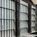 We used an aluminum curtainwall system that has some steel elements in it. It builds strength for the windows but it’s also a brise-soleil because Seoul is a harsh climate and it affects the efficiency of solar gain and heat loss. And then there’s the base, where the materiality really makes itself felt front and center. There’s wood on the inside as you enter the building, so it’s very warm to the touch, and there’s tough steel on the exterior. It’s hard on the outside, soft on the inside, like a Tootsie Pop. And, of course, the base is where the gizmos are.