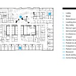The patient experience has multiple touch points and extends along the entire journey, from the entrance to the patient rooms. This experience is manifested through the design in many ways, from the extra wide corridors, which are curved at every corner for better sight lines and mobility, to optimized spaces that communicate wellness, such as the graphic ceilings designed for those lying on their backs. Motivational environmental graphics and wayfinding support the patient experience. The east and west corridors are punctuated by vistas to give patients and visitors a break from the rigorous therapy with every opportunity taken to offer fantastic views of Chicago and Lake Michigan.