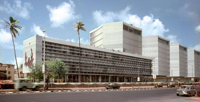 The 15-acre site of Shiv Sagar Estate at Worli is a sea-side commercial hub in central Mumbai. Completed in 1967, it adopted a strong modernist aesthetic for a newly emerging typology of office building. Today, the complex houses five identical hexagonal towers which hug the bay and provide spectacular views of the city.