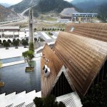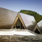 Located in Guizhou Province, the Cultural Center is a gateway to Sandu County, the land of the Shui, one of the ethnic minority groups in China. Despite being few in number, the Shui people still retains their own language, together with their unique system of pictographs. The whole projects reminds to their traditions and long history and architects’ aim was to translate Shui’s ancient rituals into the design, through the use of overlapping roofs, bronze, altars and in recreating a holy atmosphere.