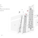The building itself consist of three main stripes, which combine all the functions of the tourist-cultural center. The first is the ritual hall, which with its sharp edges, strong colors and narrow space aims to create a strong first impression on visitors. The second stripe still keeps the sharp roof but welcomes visitors with less dramatic tones and serves cultural exhibition and reception hall. In the third stripe, which has three floors, at the ground level we lose the pitch roof to find a more conventional space that includes all the main functions: visitor and service center, cafeteria, toilets, business center and an upstairs office area. On the third floor is displayed a small collection of Shui’s books.