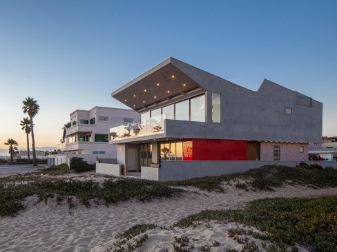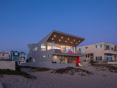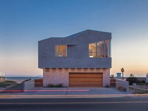Located on the Silver Strand Beach in Oxnard, this house responds to extraordinary site conditions as a progressive revealing of a sculpted interior.