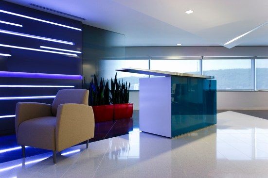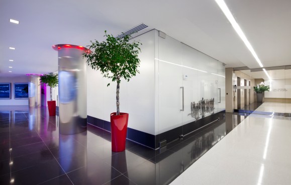 Special attention was paid to details and to the finishing materials both in the public areas and in the workspaces. Details are treated in a sober, minimalist fashion. The brilliant finishes, including lacquered wood, Italian quartz tiles and small LED bulbs inserted in partitions and walls, evoke the sparkling aspect of aircraft and runways.