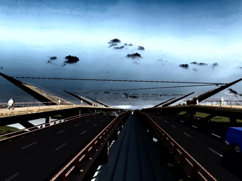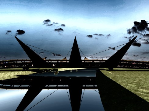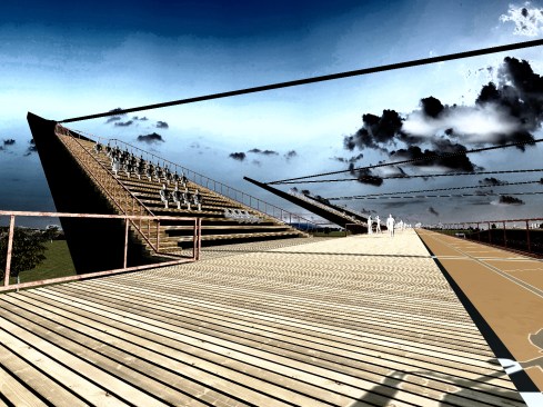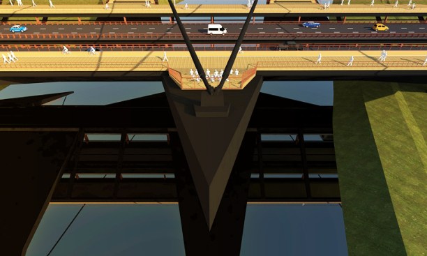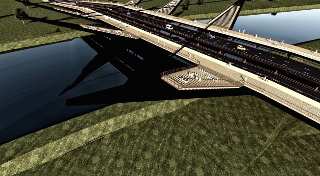 Bridge layers to protect people against noise was considered at different heights.Bridge was imagined as a public space for people.This triangular platform has been designed to create publicity. In this platform, you can watch the river, friends can give a mini-concert, you can talks to audience. Platforms also provide the carriage bridge.Suspended platforms together with steel cable are mutually stabilize the structure of the bridge.