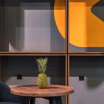 In addition to that, symmetrical grid shelves on the wall and large brand identity behind it takes the use of space to a next level efficiency and boldness.