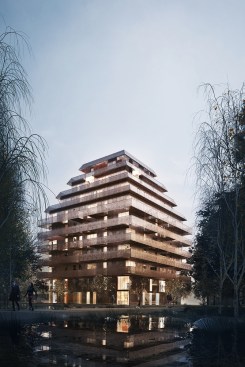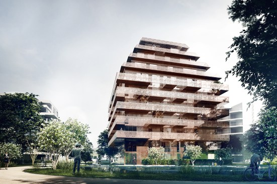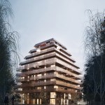 The new high quality housing project in Ski Vest will offer innovative apartments sheltered in a green new neighborhood in Ski Vest, Norway. On the site of a former military camp, the residential building will band together with the adjacent historical landscape and built environment of buildings from the 1890s in an attractive and humble manner. Through the conscious use of qualitative and location-oriented architecture, the project will reinforce and develop the inherent identity of the site.The copper housing complex consists of 50 apartments with generous openings and private spaces. The play of the tower geometry allows all apartments generous ceiling heights and sheltered terraces. Ski Vest RRA’s tower is wrapped by linear copper terraces with a characteristic pattern giving the project a unique language.