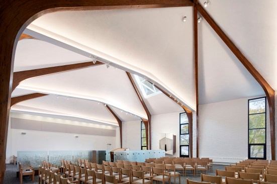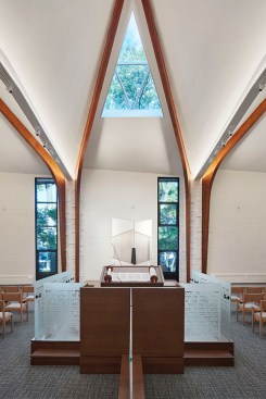 The architect and congregation were committed to creating a space that aesthetically addresses current ethical and societal needs. They achieved their goal of creating a contemporary space that allows congregants to experience both the communal aspects of praying together and the personal and intimate spiritual experience.