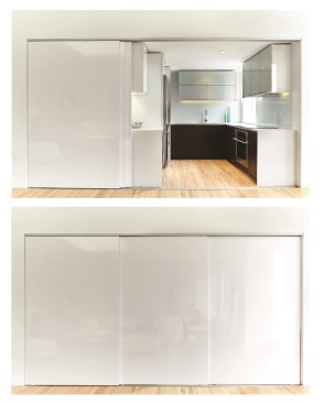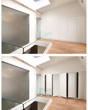 using lots of glass, and hiding storage—even rooms—behind panels and pivoting