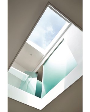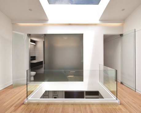 frameless transparent glass rail. The existing skylight was enlarged to bring