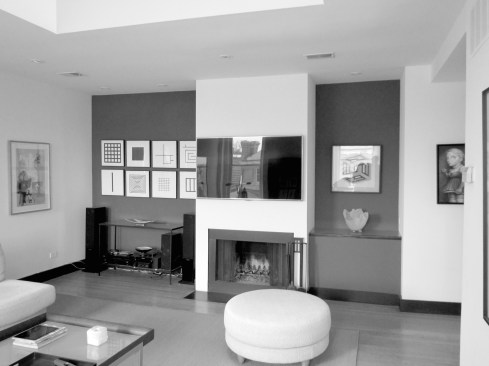 allowing the homeowner’s collection of artwork to take center stage. Upstairs,