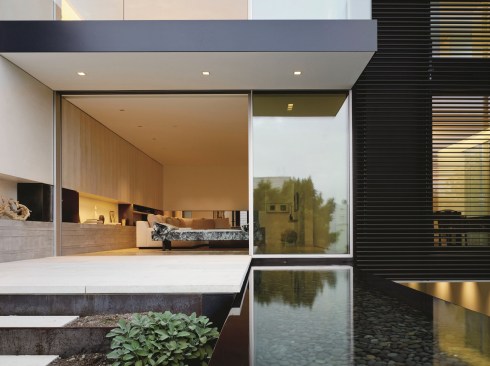 of concrete, wood, glass, steel, and diffused light. The relationship between
