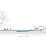 A corollary focus was to create sectional variation within the volume of the pool to encourage dynamic use at both ends while relating to the interior program of the home. A shallow beach zone for children to play is located near the family room and the access to the play space in the yard below. At the opposite end of the pool, outside the formal living room, another shallow space is made to be a splash-free sunbathing area perfect for enjoying an adult beverage.
